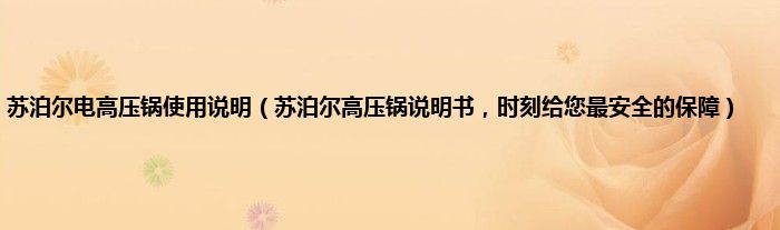 苏泊尔高压锅说明书,给您最好的使用指南,时刻给您最安全的保障!