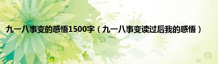 大家好,小常来为大家解答以上问题。九一八事变的感悟1500字,九一八事变读过后我的感悟很多人还不知道,现在让我们一起来看看吧!