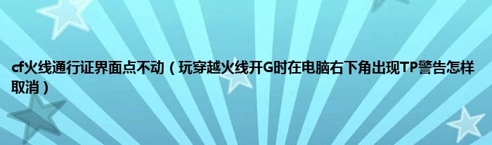 大家好,小常来为大家解答以上问题。cf火线通行证界面点不动,玩穿越火线开G时在电脑右下角出现TP警告怎样取消很多人还不知道,现在让我们一起来看看吧!