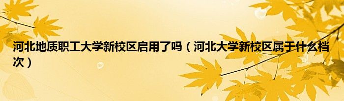 大家好,小常来为大家解答以上问题。河北地质职工大学新校区启用了吗,河北大学新校区属于什么档次很多人还不知道,现在让我们一起来看看吧!