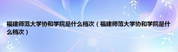 大家好,小常来为大家解答以上问题。福建师范大学协和学院是什么档次,福建师范大学协和学院是什么档次很多人还不知道,现在让我们一起来看看吧!