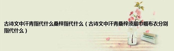 大家好,小常来为大家解答以上问题。古诗文中汗青指代什么桑梓指代什么,古诗文中汗青桑梓须眉巾帼布衣分别指代什么很多人还不知道,现在让我们一起来看看吧!
