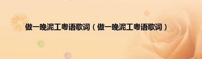 大家好,小常来为大家解答以上问题。做一晚泥工粤语歌词,做一晚泥工粤语歌词很多人还不知道,现在让我们一起来看看吧!