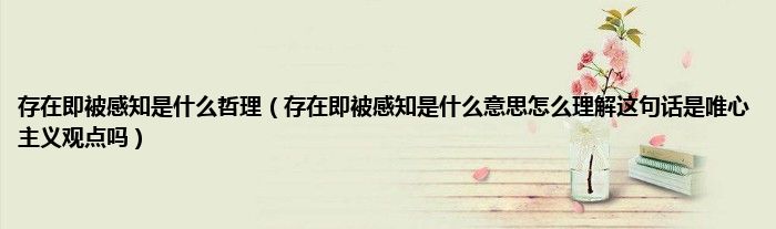 大家好,小常来为大家解答以上问题。存在即被感知是什么哲理,存在即被感知是什么意思怎么理解这句话是唯心主义观点吗很多人还不知道,现在让我们一起来看看吧!