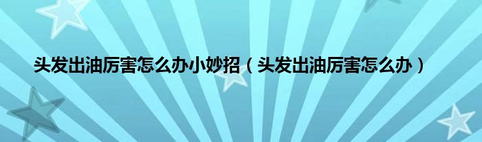 大家好,小科来为大家解答以上问题。头发出油厉害怎么办小妙招,头发出油厉害怎么办很多人还不知道,现在让我们一起来看看吧!