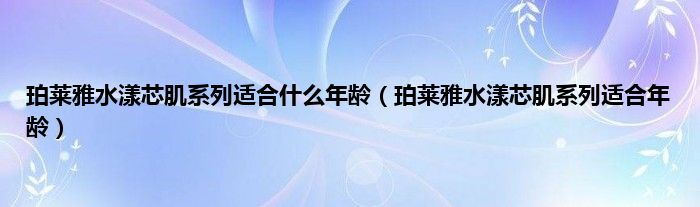 大家好,小科来为大家解答以上问题。珀莱雅水漾芯肌系列适合什么年龄,珀莱雅水漾芯肌系列适合年龄很多人还不知道,现在让我们一起来看看吧!
