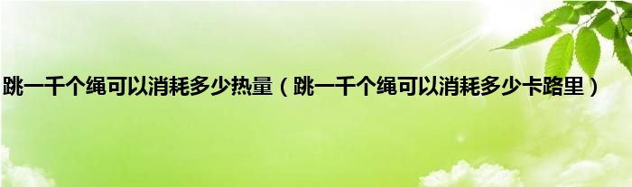 大家好,小科来为大家解答以上问题。跳一千个绳可以消耗多少热量,跳一千个绳可以消耗多少卡路里很多人还不知道,现在让我们一起来看看吧!