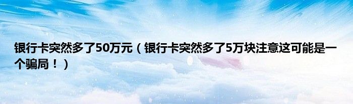 大家好,小常来为大家解答以上问题。银行卡突然多了50万元,银行卡突然多了5万块注意这可能是一个骗局!很多人还不知道,现在让我们一起来看看吧!