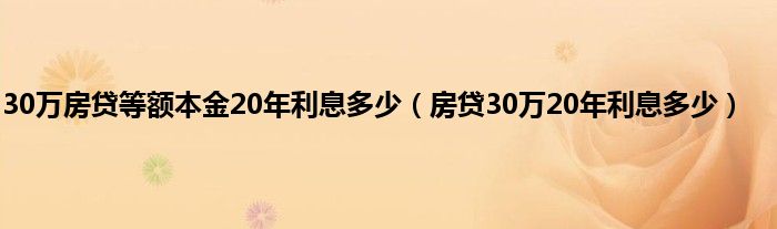大家好,小常来为大家解答以上问题。30万房贷等额本金20年利息多少,房贷30万20年利息多少很多人还不知道,现在让我们一起来看看吧!