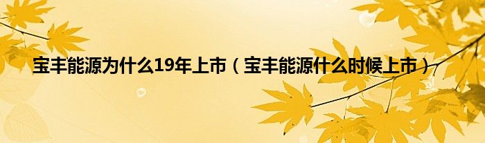 大家好,小常来为大家解答以上问题。宝丰能源为什么19年上市,宝丰能源什么时候上市很多人还不知道,现在让我们一起来看看吧!