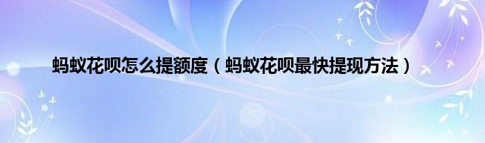 大家好,小常来为大家解答以上问题。蚂蚁花呗怎么提额度,蚂蚁花呗最快提现方法很多人还不知道,现在让我们一起来看看吧!