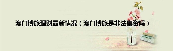 大家好,小常来为大家解答以上问题。澳门博旅理财最新情况,澳门博旅是非法集资吗很多人还不知道,现在让我们一起来看看吧!