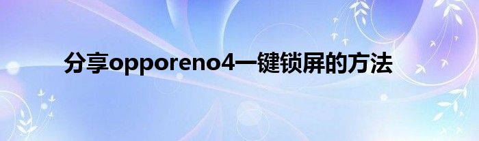 现在大家使用手机的频率越来越频繁,手机也为我们提供了许多的便利,今天小编也来说一下这个分享opporeno4一键锁屏的方法相关的文章,这个操作其实不复杂,接下来就给大家介绍一下分享opporeno4一键锁屏的方法,一起来看看吧: