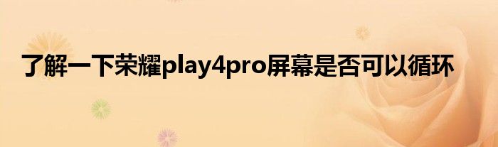 相信通过了解一下荣耀play4pro屏幕是否可以循环这篇文章能帮到你,在和好朋友分享的时候,也欢迎感兴趣小伙伴们一起来探讨。