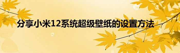 现在大家使用手机的频率越来越频繁,手机也为我们提供了许多的便利,今天小编也来说一下这个分享小米12系统超级壁纸的设置方法相关的文章,这个操作其实不复杂,接下来就给大家介绍一下分享小米12系统超级壁纸的设置方法,一起来看看吧: