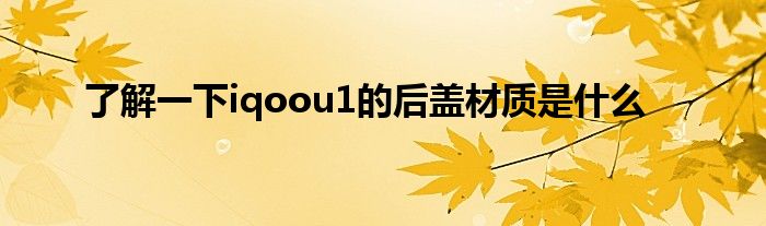现在大家使用手机的频率越来越频繁,手机也为我们提供了许多的便利,今天小编也来说一下这个了解一下iqoou1的后盖材质是什么相关的文章,这个操作其实不复杂,接下来就给大家介绍一下了解一下iqoou1的后盖材质是什么,一起来看看吧: