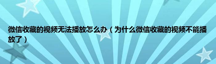 大家好,小常来为大家解答以上问题。微信收藏的视频无法播放怎么办,为什么微信收藏的视频不能播放了很多人还不知道,现在让我们一起来看看吧!
