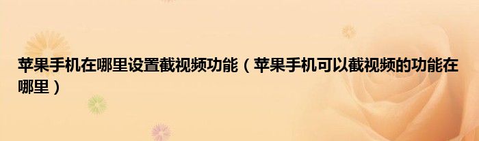 大家好,小常来为大家解答以上问题。苹果手机在哪里设置截视频功能,苹果手机可以截视频的功能在哪里很多人还不知道,现在让我们一起来看看吧!
