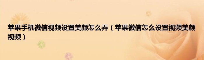 大家好,小常来为大家解答以上问题。苹果手机微信视频设置美颜怎么弄,苹果微信怎么设置视频美颜视频很多人还不知道,现在让我们一起来看看吧!
