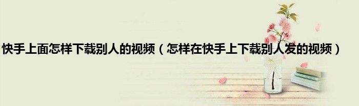 大家好,小常来为大家解答以上问题。快手上面怎样下载别人的视频,怎样在快手上下载别人发的视频很多人还不知道,现在让我们一起来看看吧!
