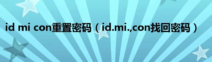 大家好,小常来为大家解答以上问题。id mi con重置密码,id.mi.,con找回密码很多人还不知道,现在让我们一起来看看吧!