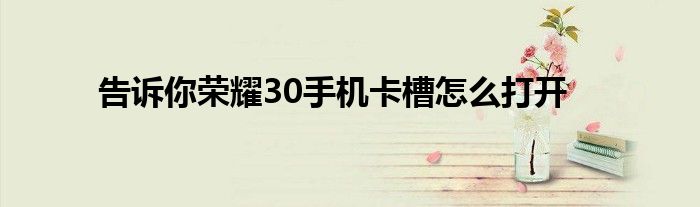 现在大家使用手机的频率越来越频繁,手机也为我们提供了许多的便利,今天小编也来说一下这个告诉你荣耀30手机卡槽怎么打开相关的文章,这个操作其实不复杂,接下来就给大家介绍一下告诉你荣耀30手机卡槽怎么打开,一起来看看吧: