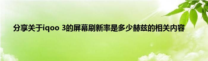 现在大家使用手机的频率越来越频繁,手机也为我们提供了许多的便利,今天小编也来说一下这个分享关于iqoo 3的屏幕刷新率是多少赫兹的相关内容相关的文章,这个操作其实不复杂,接下来就给大家介绍一下分享关于iqoo 3的屏幕刷新率是多少赫兹的相关内容,一起来看看吧:
