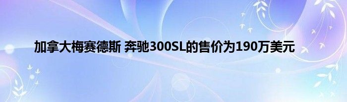 在梅赛德斯-奔驰300SL鸥翼仍然是最具收藏价值的一个跑车的时代特点,以及RK汽车夏洛特只是在私下出售出售1954例如一些有趣的加拿大出处为$ 190万。该公司认为这是自54年以来在Barett-Jackson拍卖会上以220万美元拍卖的最高价格。