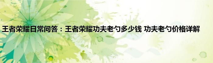 今天来聊聊关于王者荣耀日常问答:王者荣耀功夫老勺多少钱,功夫老勺价格详解的文章,游戏是很多人的选择,但是游戏玩多了也会身心疲惫,现在就为大家来简单介绍下王者荣耀日常问答:王者荣耀功夫老勺多少钱,功夫老勺价格详解,希望对各位小伙伴们有所帮助。