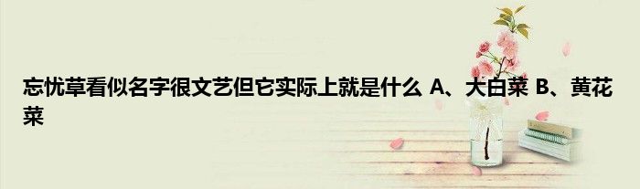 以上就是忘忧草看似名字很文艺但它实际上就是什么 A、大白菜 B、黄花菜的推荐,相信通过忘忧草看似名字很文艺但它实际上就是什么 A、大白菜 B、黄花菜这篇文章能帮到你,也欢迎对游戏很感兴趣小伙伴们一起来探讨。