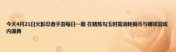 以上就是今天4月21日火影忍者手游每日一题 在精炼勾玉时需消耗铜币与哪项游戏内道具的推荐,相信通过今天4月21日火影忍者手游每日一题 在精炼勾玉时需消耗铜币与哪项游戏内道具这篇文章能帮到你,也欢迎对游戏很感兴趣小伙伴们一起来探讨。