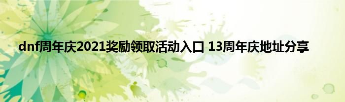 DNF马上迎来13周年庆活动,玩家可以通过参加活动获得各种奖励,其中还有很多的福利是免费发放给玩家的,很多玩家不知道活动地址,小编这就带大家来看看DNF13周年庆的活动地址入口,希翼能帮到各位玩家,祝大家玩得愉快。