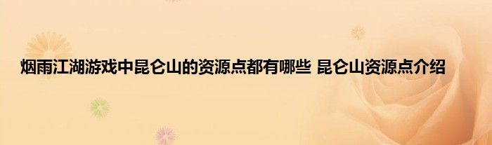 以上就是烟雨江湖游戏中昆仑山的资源点都有哪些 昆仑山资源点介绍的推荐,相信通过烟雨江湖游戏中昆仑山的资源点都有哪些 昆仑山资源点介绍这篇文章能帮到你,也欢迎对游戏很感兴趣小伙伴们一起来探讨。