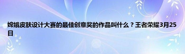 一、昨日推文中提到的获得本次嫦娥皮肤设计大赛的最佳创意奖的作品叫做什么?
