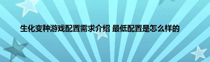 《生化变种》当中玩家可以在开放的地图里面进行冒险,你可以使用自己的角色来战斗,并对你的角色自定义,在游戏里面有很多种类不同的玩法模式,玩家能够自行选择。但是一些玩家不知道这个游戏的配置是怎么样的,最低配置要怎么样的才干玩,那下面就让小编来给玩家们介绍一下吧。