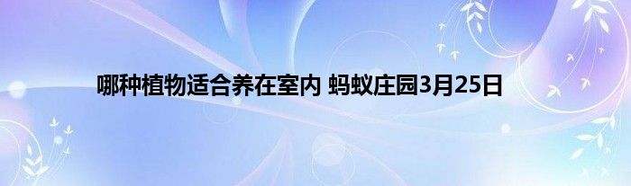 蚂蚁庄园3月25日的题目更新了,是关于室内植物的。不是下列哪种植物适合养在室内?不是所有植物都适合室内的。这是支付宝蚂蚁庄园小课堂今日先行公布的3月25日问题,答对即可获得一份180g饲料,那么接下来就让我们一起了解一下正确答案吧!