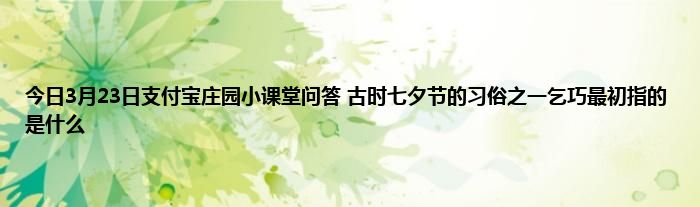 今天弟哥来分享一篇关于今日3月23日支付宝庄园小课堂问答 古时七夕节的习俗之一乞巧最初指的是什么的文章,游戏是很多人的选择,但是游戏玩多了也会身心疲惫,现在就为大家来简单介绍下今日3月23日支付宝庄园小课堂问答 古时七夕节的习俗之一乞巧最初指的是什么,希望对各位小伙伴们有所帮助。