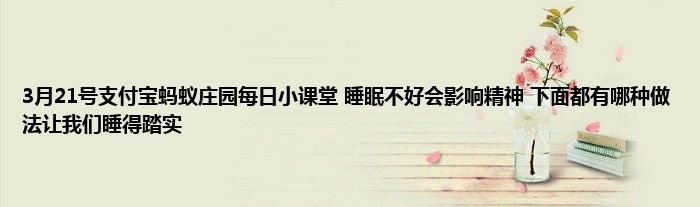 关于睡眠不好会影响精神 下面都有哪种做法让我们睡得踏实,相信现在玩蚂蚁庄园的人都很想知道今天这个问题的答应吧,那现在小编就给大家说说睡眠不好会影响精神 下面都有哪种做法让我们睡得踏实,希望小编说的会给大家带来帮助。