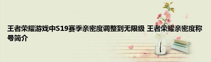 以上就是王者荣耀游戏中S19赛季亲密度调整到无限级 王者荣耀亲密度称号简介的推荐,相信通过王者荣耀游戏中S19赛季亲密度调整到无限级 王者荣耀亲密度称号简介这篇文章能帮到你,也欢迎对游戏很感兴趣小伙伴们一起来探讨。