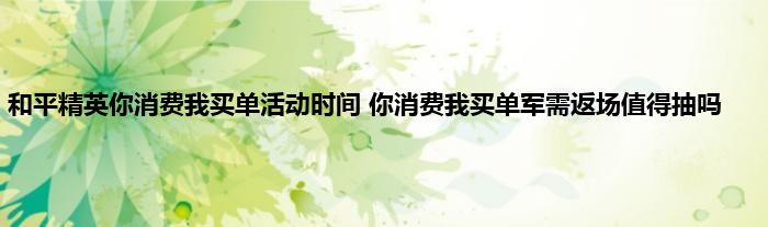 和平精英你消费我买单活动火热到来,不少玩家还不太清晰这个活动持续时间,你消费我买单活动时间什么时候结束?这次的军需返厂值得抽吗?相信不少朋友都有这样的疑问,这里就为大家带来详细的解答。