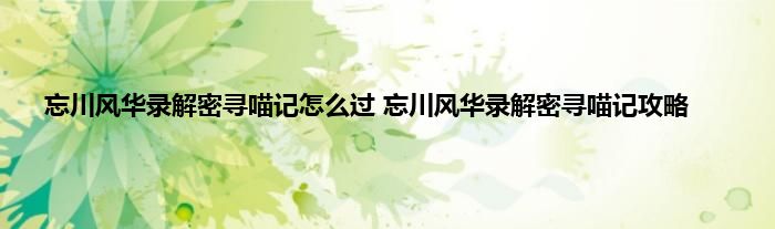 忘川风华录游戏中发热解密寻喵记对于普通玩家来说还是有一定的难度的,很多玩家们都不知道忘川风华录解密寻喵记怎么过,那么忘川风华录解密寻喵记怎么过?蚕豆君为您带来忘川风华录解密寻喵记攻略分享。