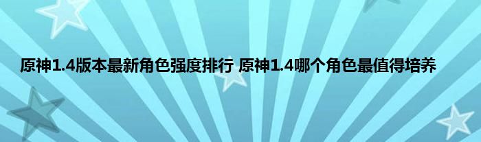 原神1.4哪个角色最值得培养?原神1.4版本来了,由于很多的改动和优化,以及新角色的推出,很多角色都没有以前的强势了,加上新版本的武器圣遗物等有更新,所以比以前的角色,强度排行就有所变化了,那么原神1.4中哪个角色最值得抽和培养呢,下面就来一起看看吧。