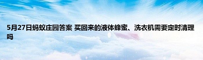 2021年5月27日蚂蚁庄园答案是什么?5月27日蚂蚁庄园的答案很多的玩家都不清晰,这二个问题有:买回来的液体蜂蜜,遇到天气转冷容易浮现结晶,是坏了吗?洗衣机需要定时清理吗?下面小编给大家介绍一下具体的答案和解析,一起来看看吧。