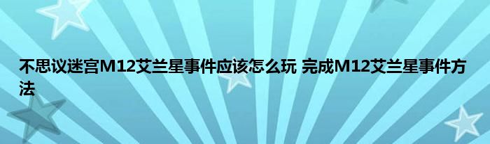 以上就是不思议迷宫M12艾兰星事件应该怎么玩 完成M12艾兰星事件方法的推荐,相信通过不思议迷宫M12艾兰星事件应该怎么玩 完成M12艾兰星事件方法这篇文章能帮到你,也欢迎对游戏很感兴趣小伙伴们一起来探讨。