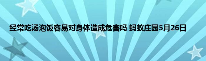 很多人喜欢吃汤泡饭,那么汤泡饭可以经常吃吗?经常吃汤泡饭容易对身体造成危害吗?这是支付宝中蚂蚁庄园玩法5月26日小课堂的问题。那么接下来就让我们一起了解一下经常吃汤泡饭容易对身体造成危害,该说法是否正确吧!