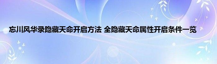 忘川风华录隐藏天命有哪些?忘川风华录游戏里一些天命是隐藏的,这些隐藏天命需要玩家提高和特定的名士羁绊才能获取。因此这个系统不少的玩家都不清楚怎么开启,下面就来看看具体的天命效果和开启方法,希望大家喜欢。
