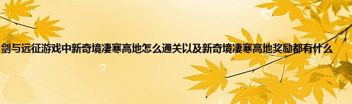 今天来聊聊关于剑与远征游戏中新奇境凄寒高地怎么通关以及新奇境凄寒高地奖励都有什么的文章,游戏是很多人的选择,但是游戏玩多了也会身心疲惫,现在就为大家来简单介绍下剑与远征游戏中新奇境凄寒高地怎么通关以及新奇境凄寒高地奖励都有什么,希望对各位小伙伴们有所帮助。