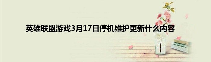 以上就是英雄联盟游戏3月17日停机维护更新什么内容的推荐,相信通过英雄联盟游戏3月17日停机维护更新什么内容这篇文章能帮到你,也欢迎对游戏很感兴趣小伙伴们一起来探讨。