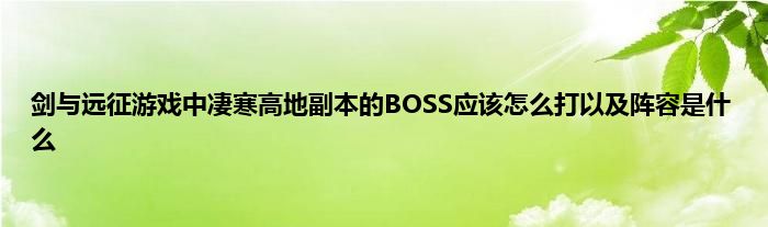 小编今天给各位玩家朋友们带来的是剑与远征游戏中凄寒高地副本的BOSS应该怎么打以及阵容是什么,有记得的玩家朋友吗?不记得也没有关系,小编已经帮助大家把剑与远征游戏中凄寒高地副本的BOSS应该怎么打以及阵容是什么找了出来,你只需要动动你的小手就可以轻松知道啦,快来瞧一瞧吧。