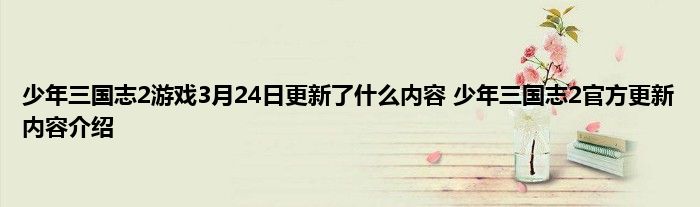 以上就是少年三国志2游戏3月24日更新了什么内容 少年三国志2官方更新内容介绍的推荐,相信通过少年三国志2游戏3月24日更新了什么内容 少年三国志2官方更新内容介绍这篇文章能帮到你,也欢迎对游戏很感兴趣小伙伴们一起来探讨。